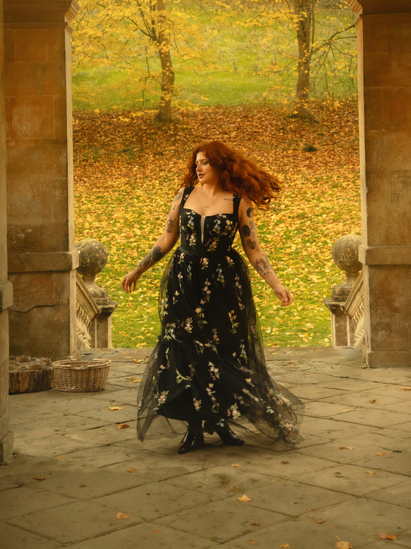 The Hollow to Floor measurement of our standard dresses already includes 2 inches(ca.5 cm) extra to fit high heels.