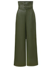 1940s High-Waist Metal Belt PU Leather Wide-Leg Pants | Retro Stage