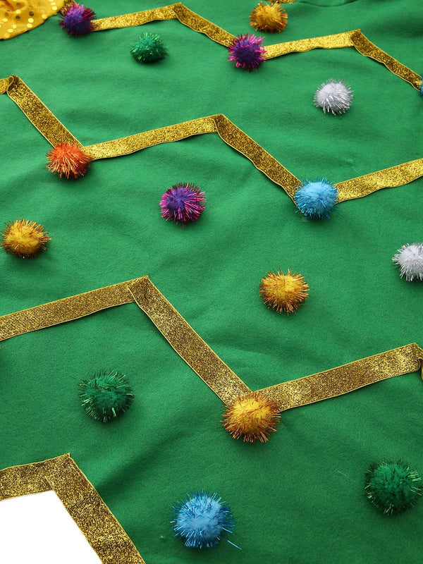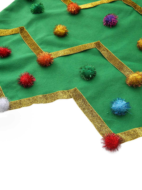 1950s Christmas Tree Hoodie With Colorful Pom Poms | Retro Stage