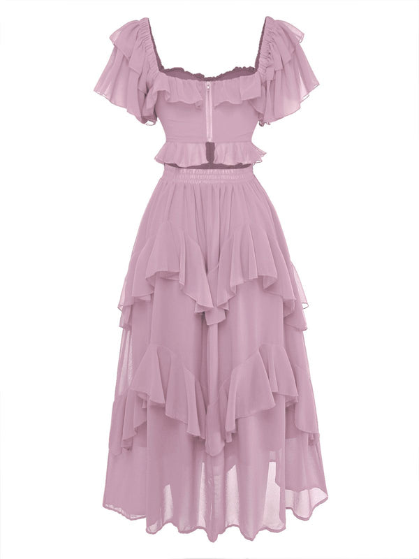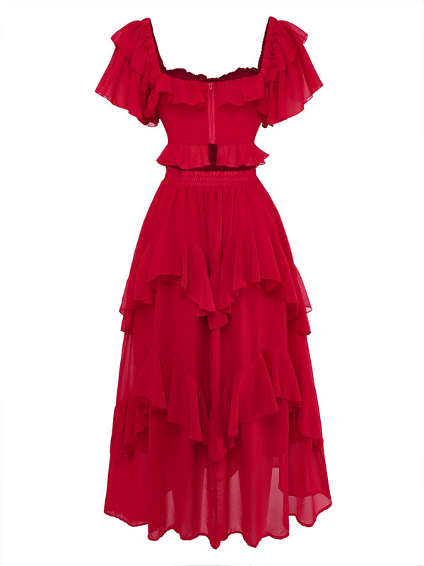 1950s Ruffle Tiered Off-Shoulder Maxi Dress