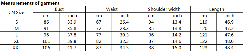 Size: There are 5 sizes (S/M/L/XL/XXL) available. Please allow 1-inch differences due to manual measurement. Thanks for understanding! (All measurements in cm and please note 1 inch=2.54cm)