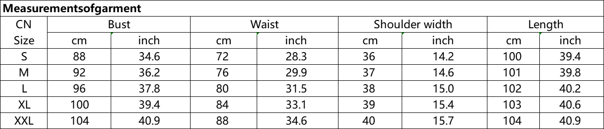 Size: There are 5 sizes (S/M/L/XL/XXL) available. Please allow 1-inch differences due to manual measurement. Thanks for understanding! (All measurements in cm and please note 1 inch=2.54cm)