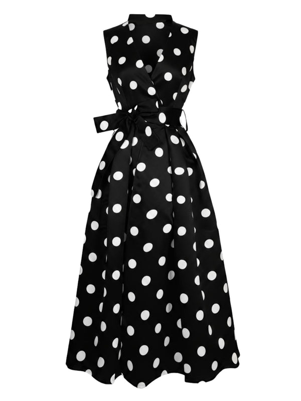 1950s Surplice V-Neck Polka Dot Belted Dress | Retro Stage