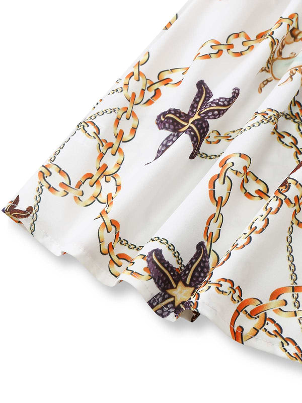1960s V-Neck Chain Seashell Waist Cutout Romper