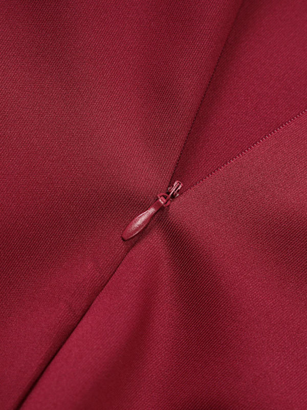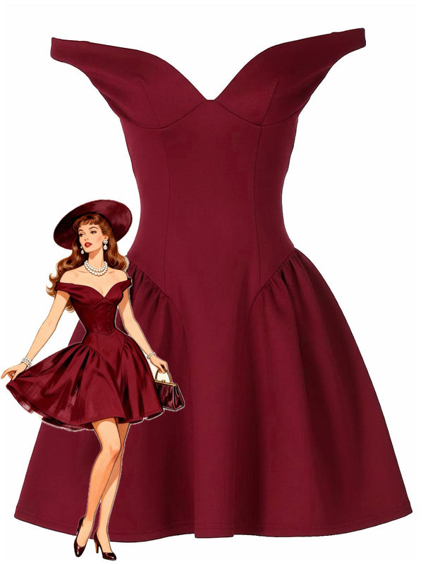 1970s Solid Off-Shoulder Deep V-Neck Skater Dress | Retro Stage