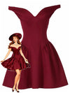 1970s Solid Off-Shoulder Deep V-Neck Skater Dress