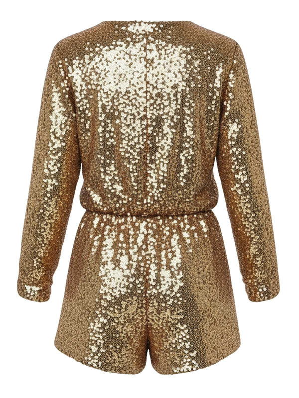 1970s V-Neck Sequin Long Sleeve Romper | Retro Stage
