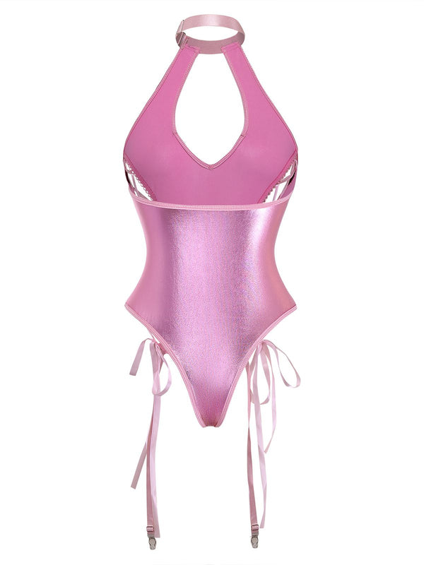 1980s Patent Leather Halter Lace-Up Bodysuit Lingerie Set | Retro Stage