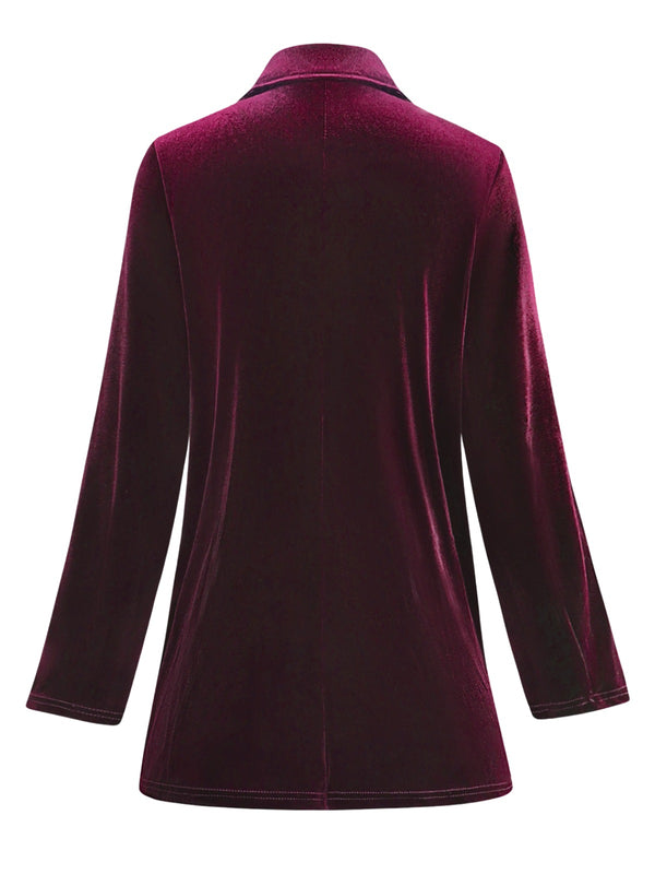 1980s Solid Velvet Double-Breasted Lapel Blazer