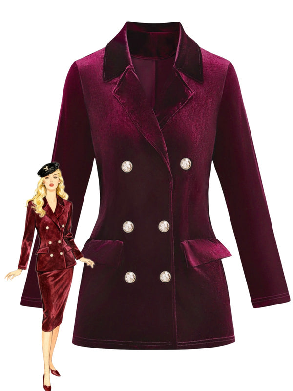 1980s Solid Velvet Double-Breasted Lapel Blazer | Retro Stage