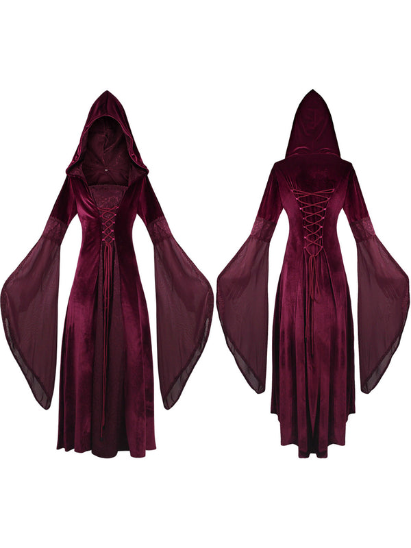 1980s Velvet Medieval Lace-Up Hooded Dress | Retro Stage