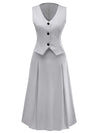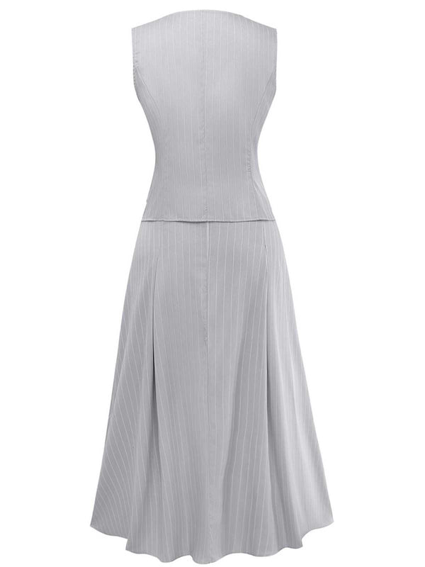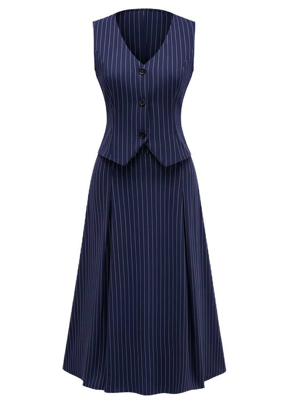 2PCS 1940s Stripe Sleeveless Vest & Midi Skirt