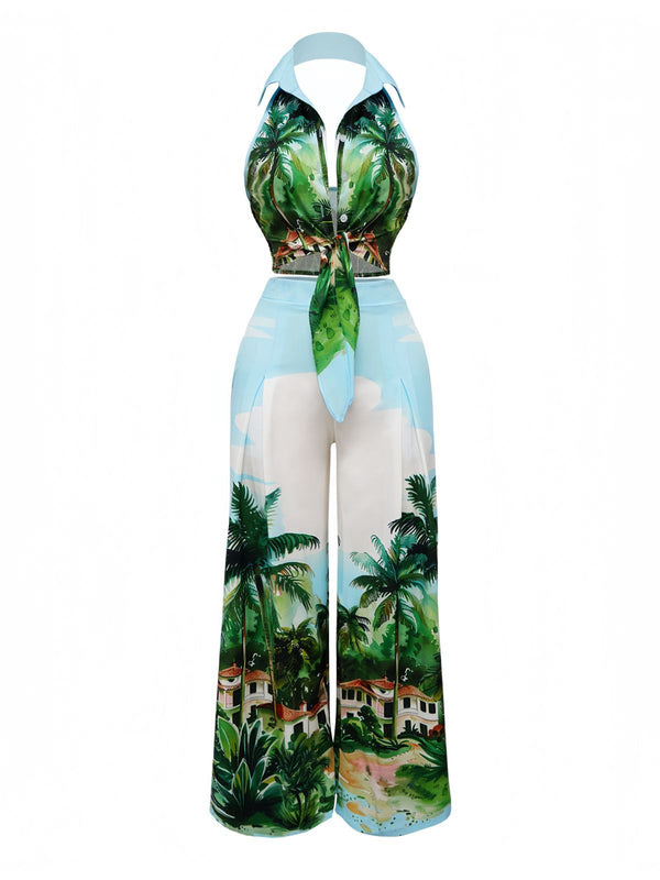 2PCS 1950s Tropical Style Halter Top & Pants | Retro Stage