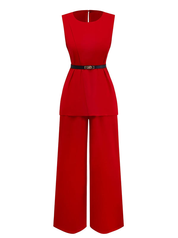 2PCS 1960s Sleeveless Vest & Belted Waist Pants