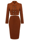 ‍2PCS Brown 1960s Button Top & Pencil Skirt (86% off) | Retro Stage
