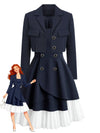 [Pre-Sale] 2PCS Dark Blue 1950s Cropped Jacket & Lace Pinafore Dress | Retro Stage