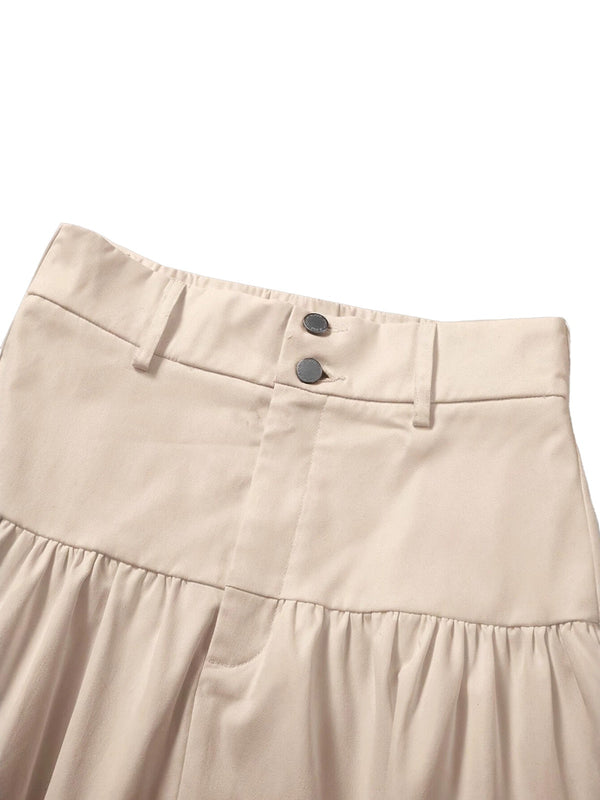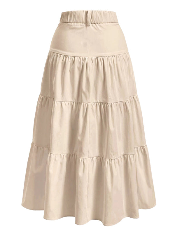 Beige 1940s Solid Multi-Layer Ruffled Skirt