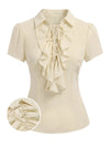 [Pre-Sale] Beige 1960s Victorian Ruffled Front Tie Button Blouse | Retro Stage