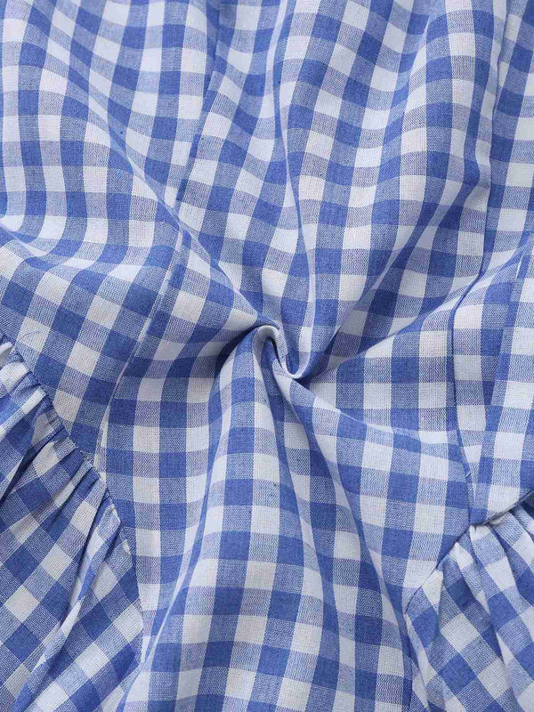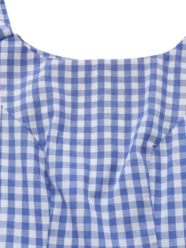 Blue 1960s Gingham Plaid Shoulder-Tie Empire Dress