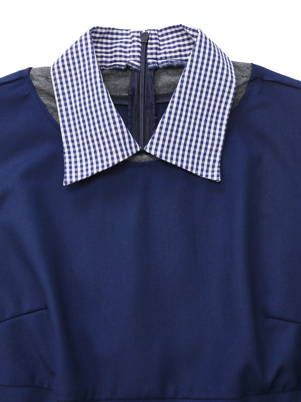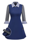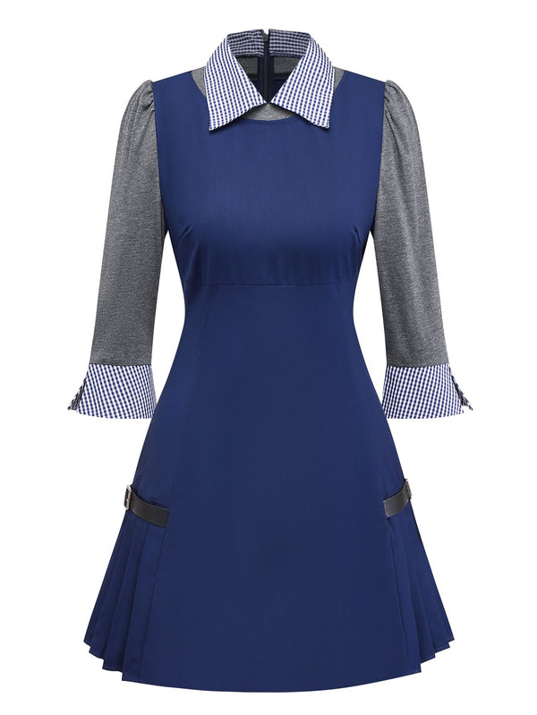 [Pre-Sale] Blue 1960s Plaid Lapel Patchwork Pleated Dress