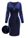 [Pre-Sale] Blue 1960s V-Neck Glitter Velvet Pencil Dress | Retro Stage