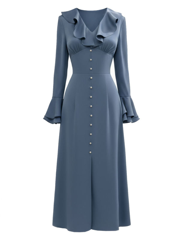 [Pre-Sale] Blue-Gray 1940s Button Satin Split Dress