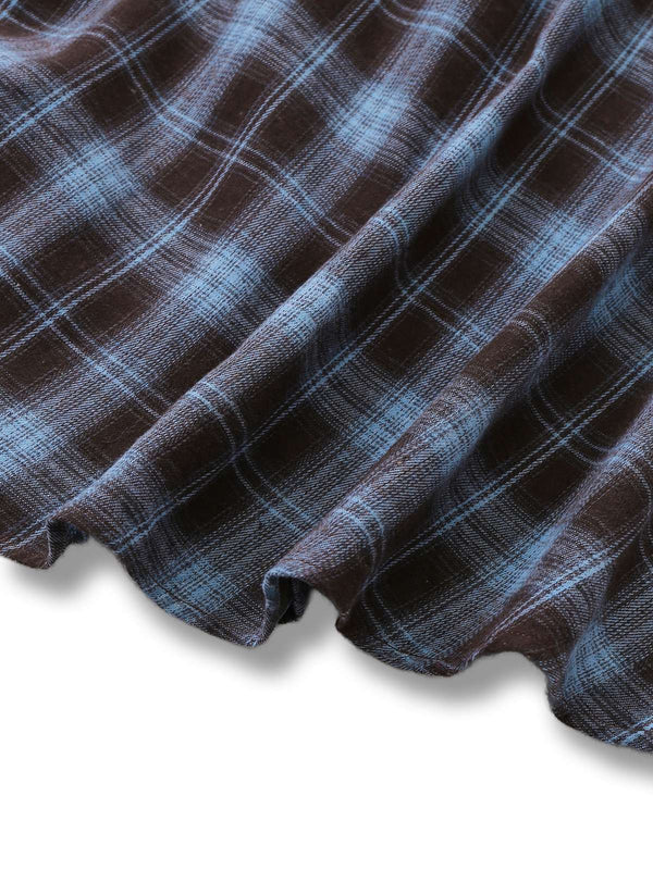 [Pre-Sale] Blue Grey 1940s Plaid Sweetheart Neck Brushed Dress | Retro Stage