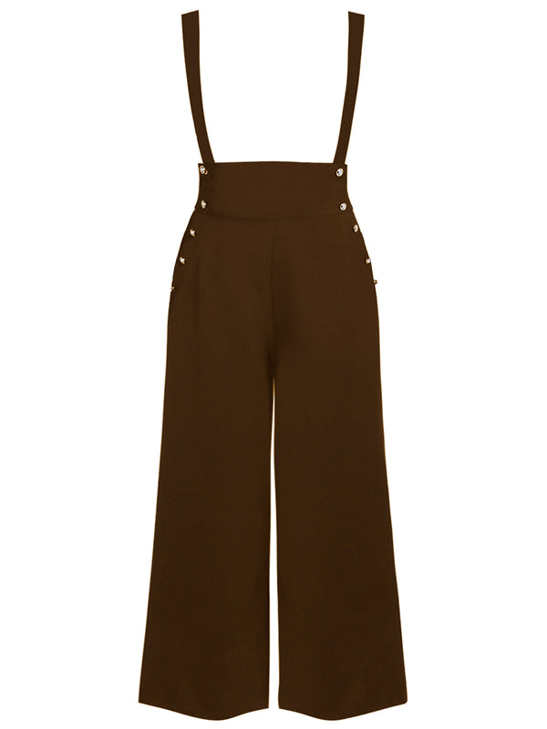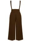 For audacious adventures, dames! A fabulous retro staple in a solid black, these sensational suspender pants are crafted in a lightweight woven fabric for a breezy addition to your ensemble. The high banded waist is cinched with buttons while the classic suspenders are secured with buttons and easily removable for versatile wear while can be easily adjusted for a flattering fit.