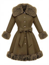 Snowy days feel like a vintage fairytale in this Retro Stage 1950s coat, perfect for retro lovers who like their winter layers soft and elegant. Creamy winter-white fabric is tailored into a fit-and-flare 1950s swing shape with a self-tie belt to nip in your waist, while plush faux fur at the collar, cuffs and hem adds cosy drama. Slip into this 1950s faux fur winter coat over your favourite dresses and you’ll look like the chicest heroine on every frosty stroll.Closure Type: Front Center Button