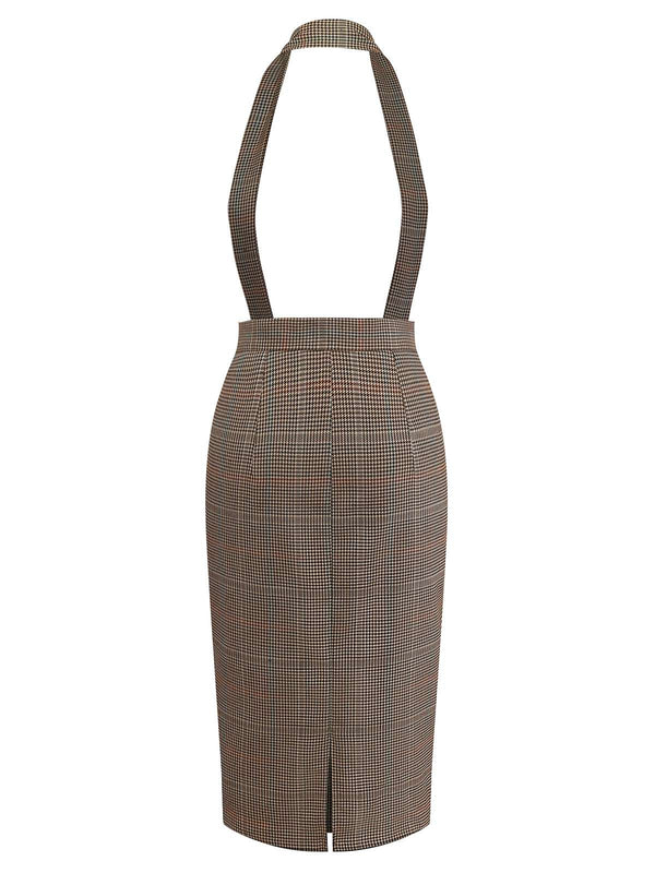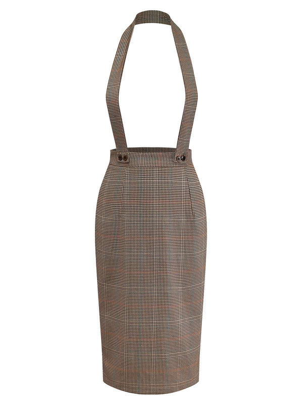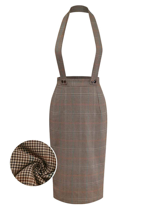 [Pre-Sale] Brown 1960s Houndstooth Suspender Pencil Skirt | Retro Stage