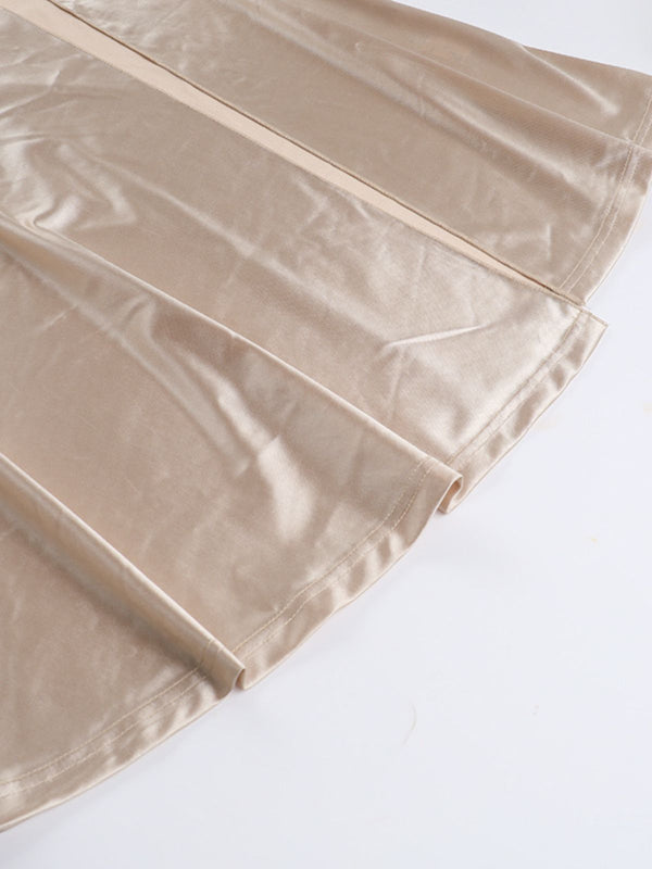 Champagne 1930s Off Shoulder Slit Satin Dress | Retro Stage