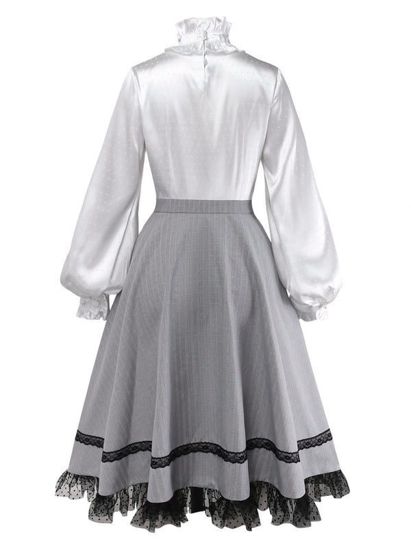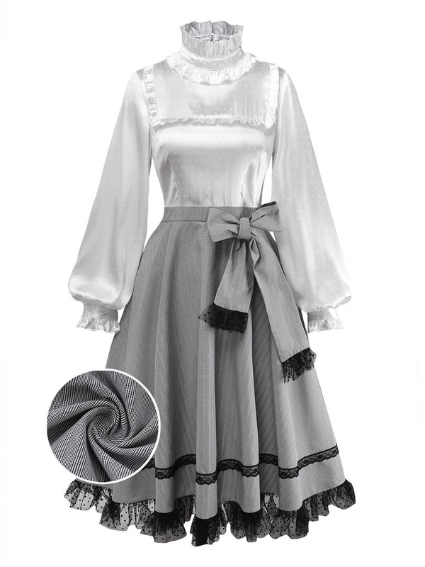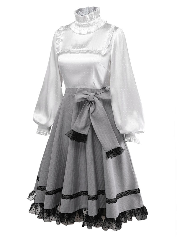 Feature: Lantern Sleeves, Polka Dot, Bow, Lace Patchwork