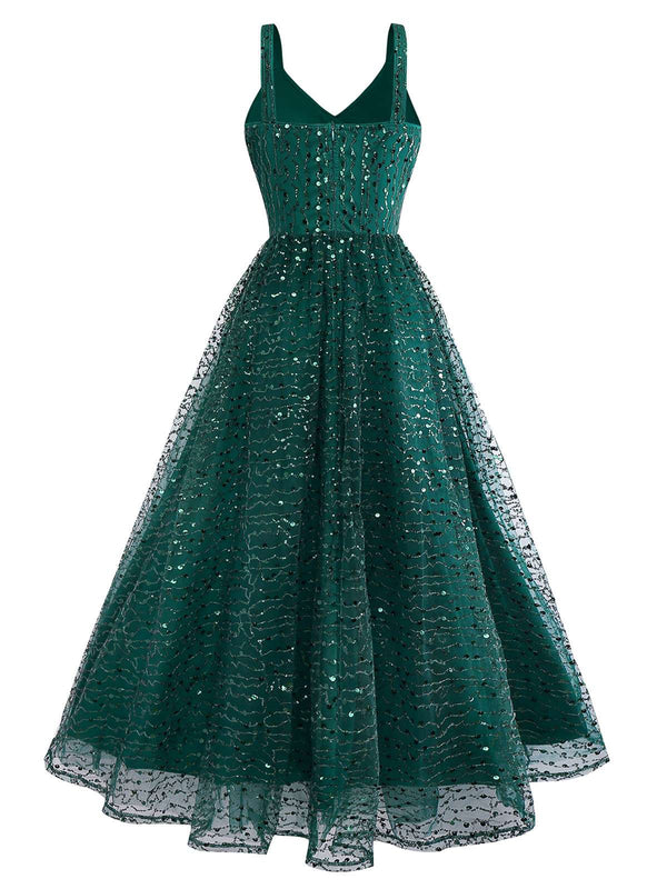 Green 1930s Twisted Sequin Mesh Dress | Retro Stage