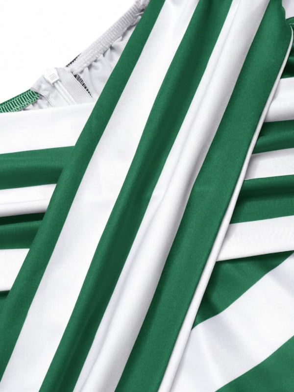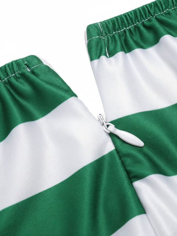This striking black and white striped jumpsuit effortlessly bridges the seasons, making it a perfect choice from late summer into fall. The breezy wide-leg silhouette is ideal for warm days, while the bold stripes and off-the-shoulder design add a playful, sophisticated touch. As Halloween approaches, its chic black-and-white palette ties perfectly into the festive spirit, giving you a stylish edge for any event from sunny afternoons to cool autumn evenings.Composition: 100% Polyester