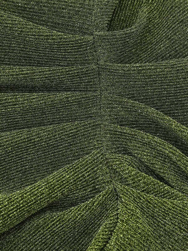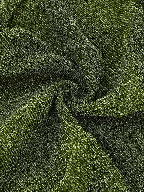 Green 1960s Ruched Puff Sleeve Midi Dress