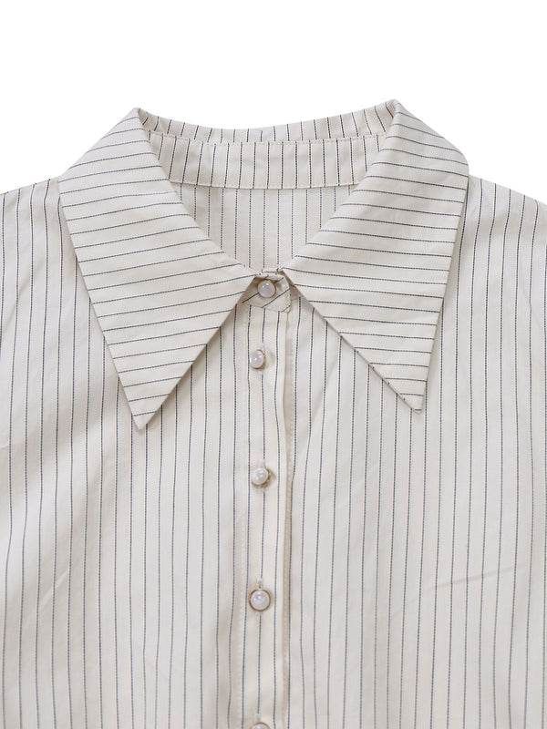 [Pre-Sale] Khaki 1930s Striped Lapel Blouse Detachable Tie Dress