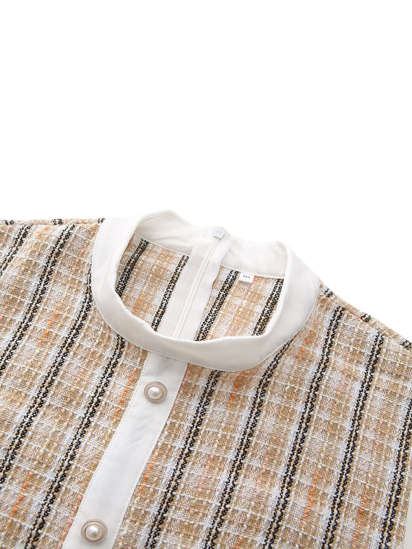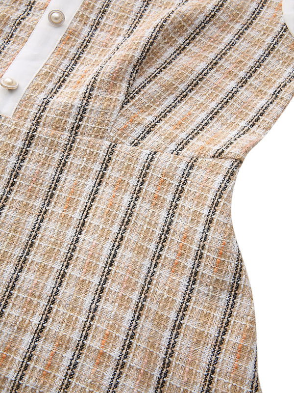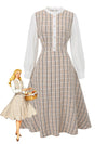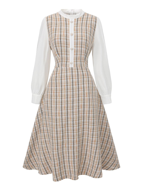 Khaki 1940s Vintage Style Patchwork Long Sleeve Dress