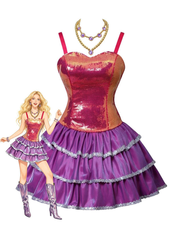 Pink 1960s Barbie Sequin Strap Ruffled Dress | Retro Stage