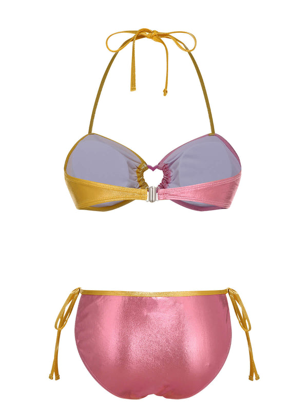 Pink & Yellow 1970s Heart Ring Bikini Set