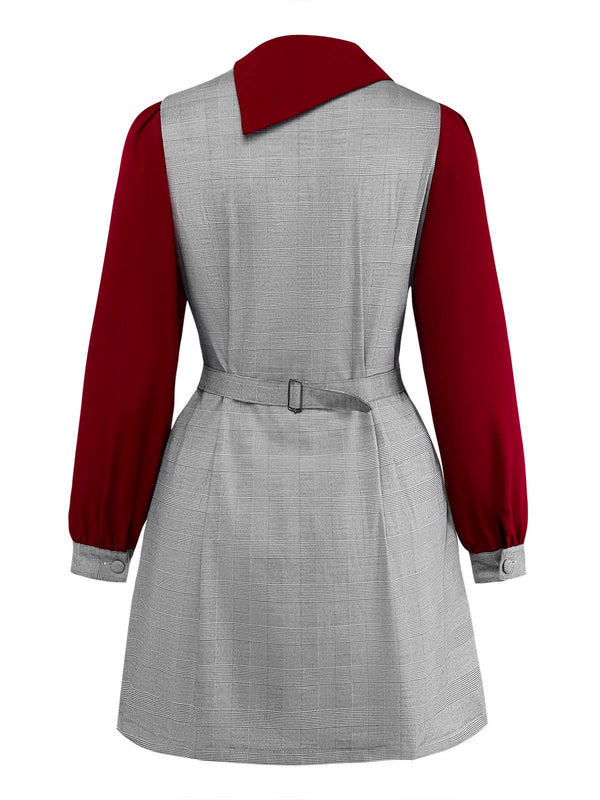 Feature: Plaid Patchwork; A-line Mini Dress; Back Belt