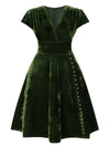 Dinner dates feel effortlessly elegant in this Retro Stage 1940s plus size dress, perfect for vintage lovers who adore rich romance with a timeless silhouette. Plush deep-green velvet shapes a flattering V-neck bodice and defined waist, flowing into a full skirt that moves with graceful swish and shine. Slip into this 1940s-inspired velvet dress with heels and classic earrings and you’ll look poised, confident, and beautifully vintage all night.