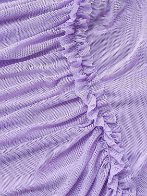 Purple 1970s Mesh One-Shoulder Ruffled Asymmetrical Dress