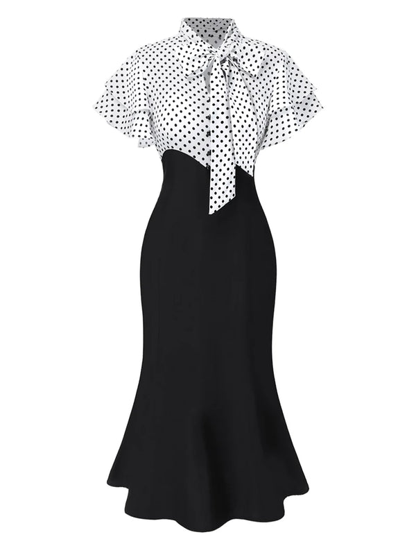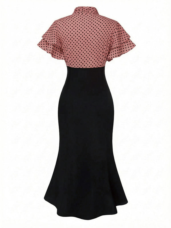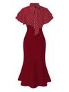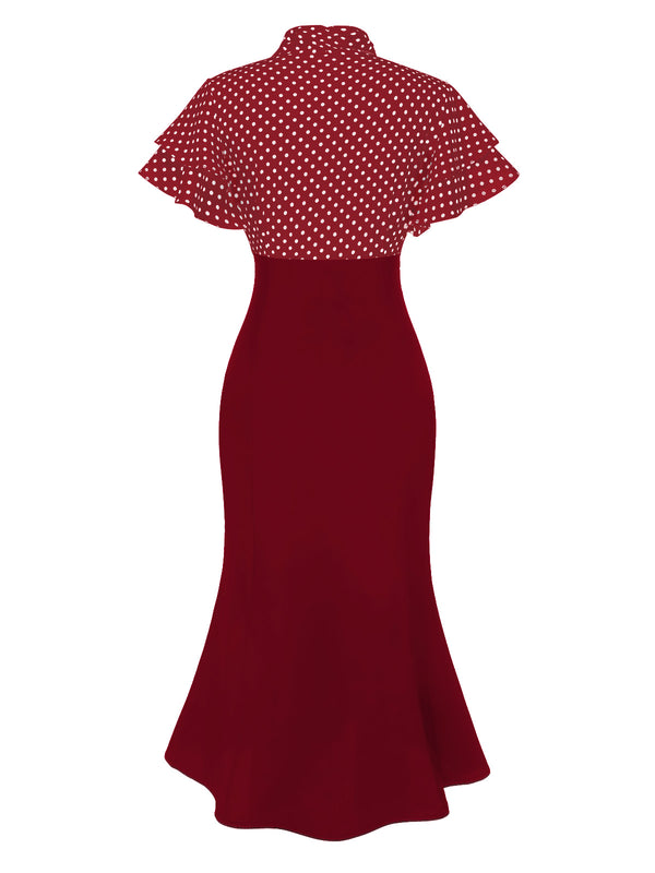 Red 1930s Dots Tie Neck Mermaid Dress | Retro Stage