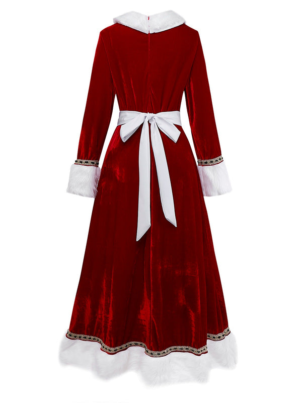 Red 1930s Mrs. Claus Costume Velvet Dress Set