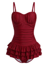 [Pre-Sale] Red 1950s Ruffled Ruched Tiered One-Piece Swimsuit