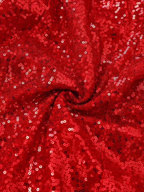 Red 1970s Christmas Sequined Off-Shoulder Plush Trim Dress | Retro Stage