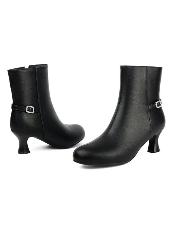 Retro Solid Faux Leather Side Zipper Ankle Boots | Retro Stage