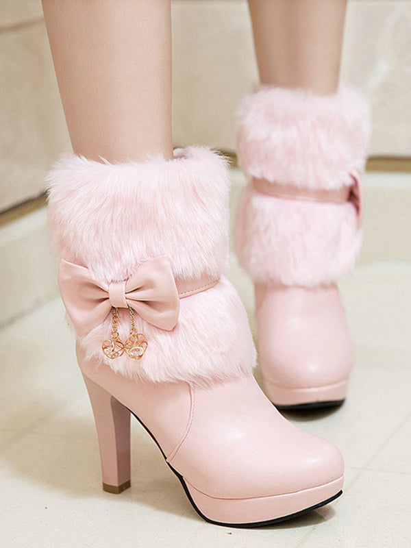 Step into snow-queen sweetness with these Retro Stage vintage boots, made for retro lovers who want their winter shoes to feel a little bit magical. Smooth white faux leather curves into a classic almond toe and sturdy mid heel, while a cuff of plush faux fur wraps your ankles like fresh powdery snow. At the side, an oversized bow and dainty gold charm add just the right touch of doll-like glamour, as if your boots were gift-wrapped just for you. Pair these vintage shoes with swing dresses, wool coats or cosy Christmas knits and you’ll look like you’re walking through your own dreamy winter fairytale with every step.