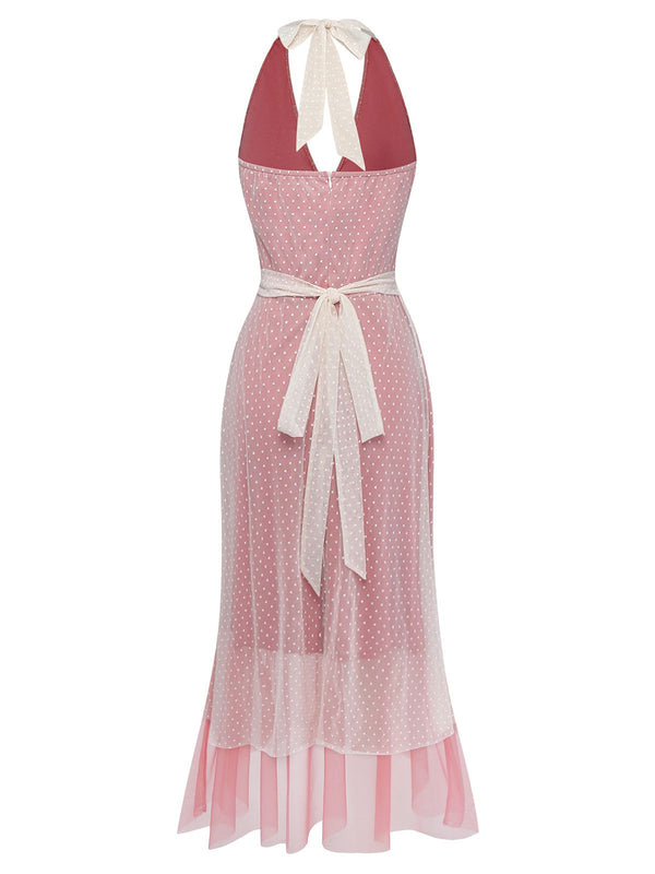 [Pre-Sale] Rose Pink 1930s Polka Dot Mesh V-Neck Dress