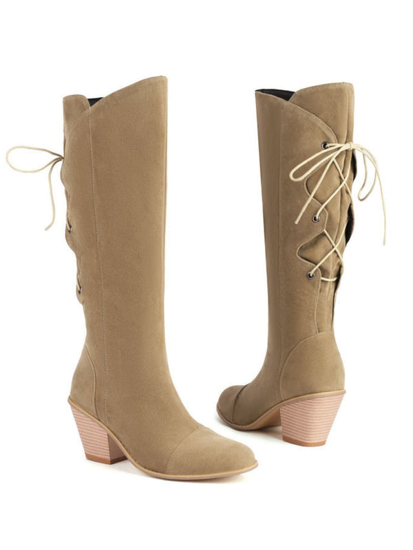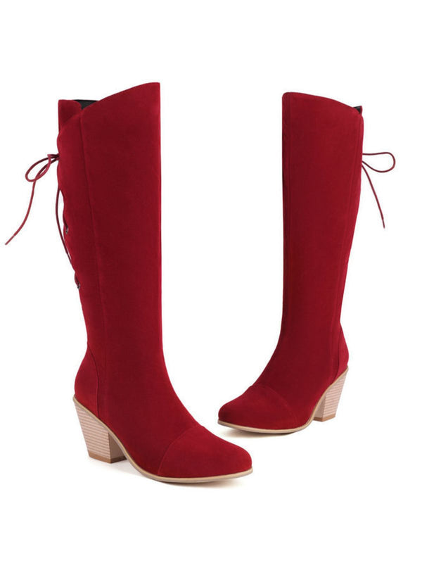 Suede Knee Lace-Up Block Heel Boots | Retro Stage